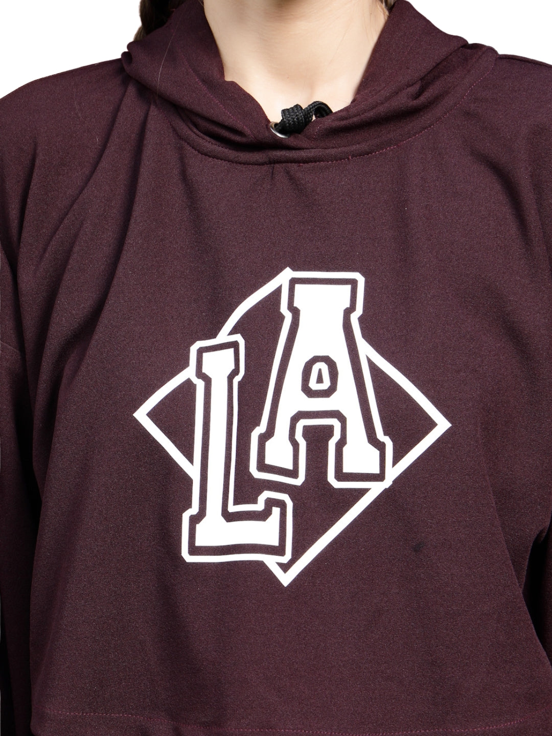 Elevate your street-style look with this Wine printed crop sweatshirt for women, perfect for a casual yet fashionable vibe. Designed with a bold logo print, adjustable drawstring hood, and rexed fit, this pink women’s hoodie offers both comfort and confidence. Ideal for airport looks, college wear, gym sessions, or weekend outings, it pairs effortlessly with joggers or jeans. Add this stylish Wine sweatshirt to your wardrobe for a perfect blend of sporty and chic fashion.