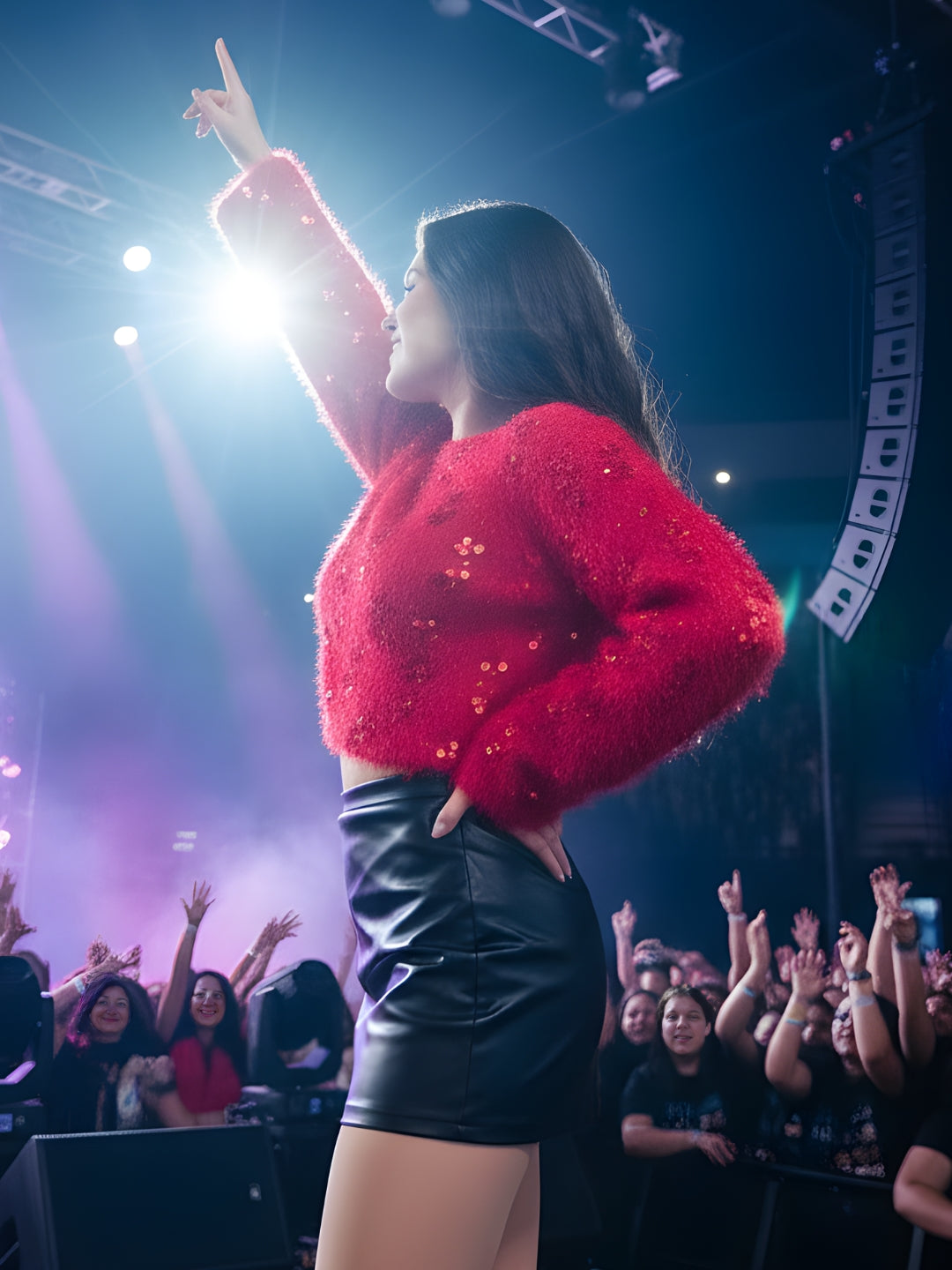 Red Sequin Furry Top for Women – Partywear Shimmer Top | Stylish Designer Evening Top